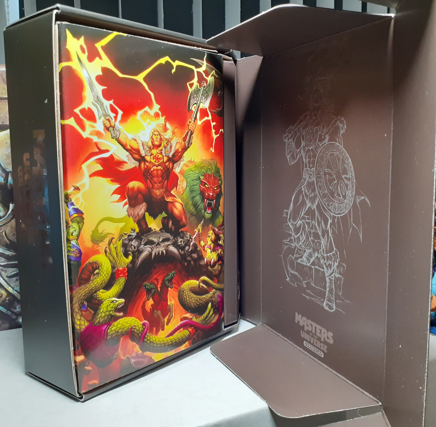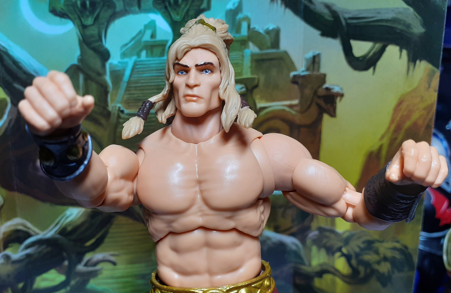 Inside the box is an insert with the scene from the front of the box. Previous Mattel Creations exclusives like this had art inserts too and it’s great that this is continuing with the Chronicles line. The reverse of the insert has another scene featuring a snake temple. Very moody!