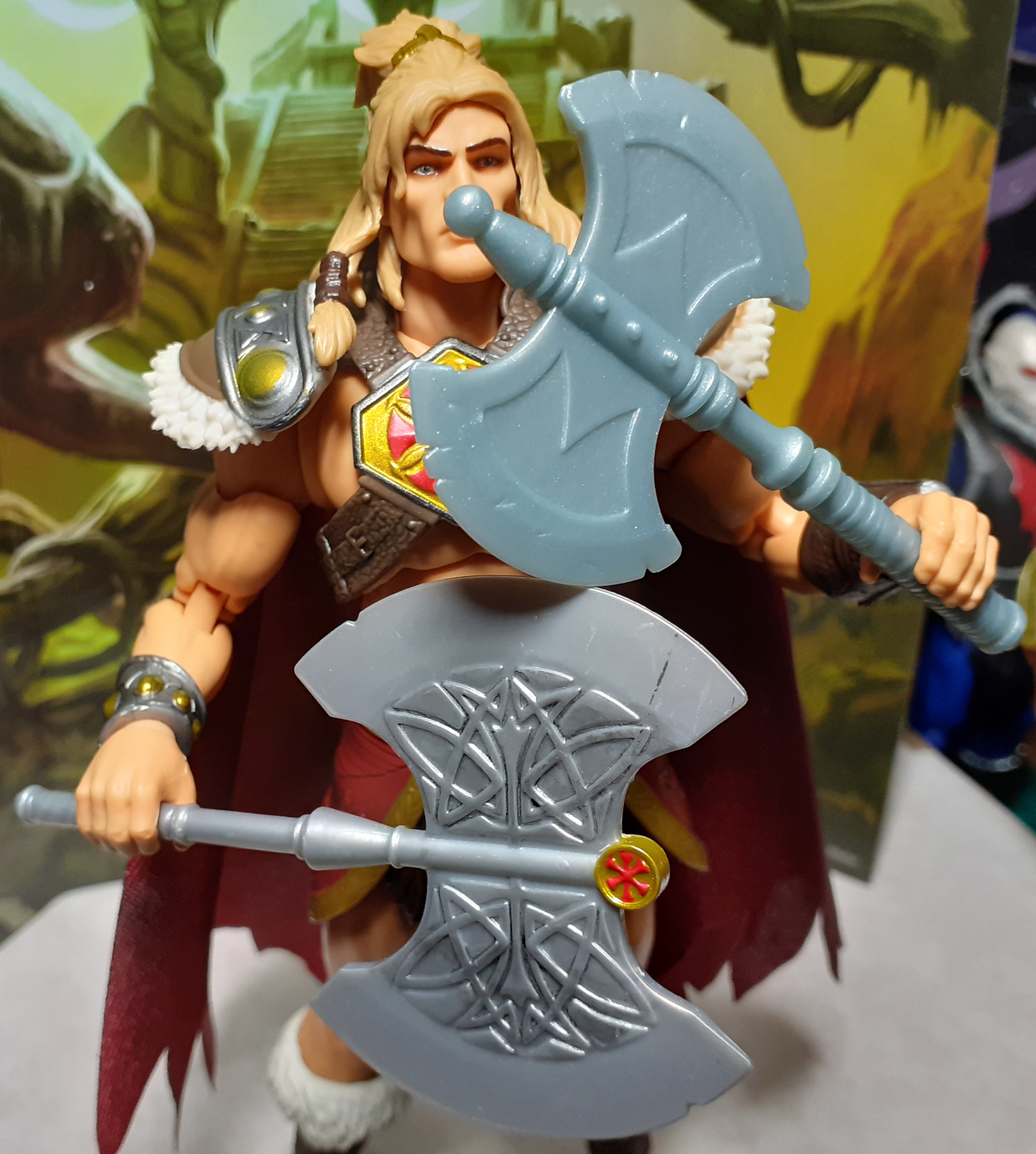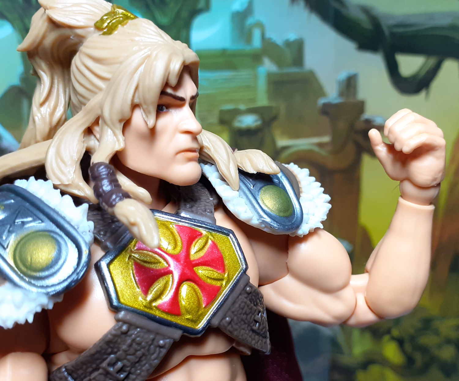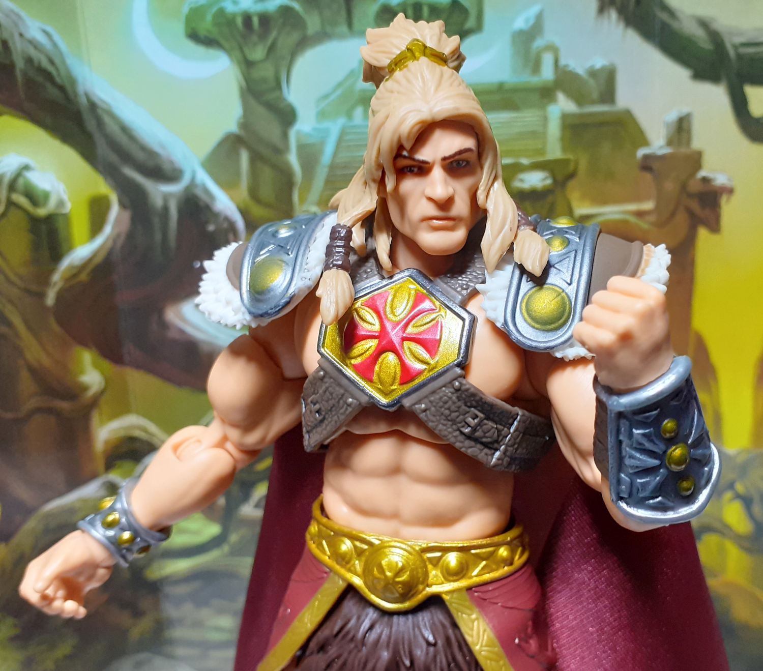 This Chronicles version of King Grayskull has gone back to the character’s roots and has a white skin tone and blonde hair. Still has the braids though.