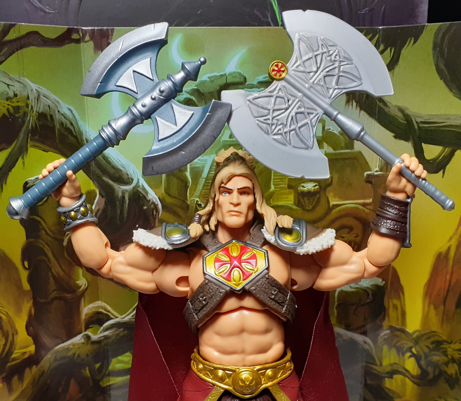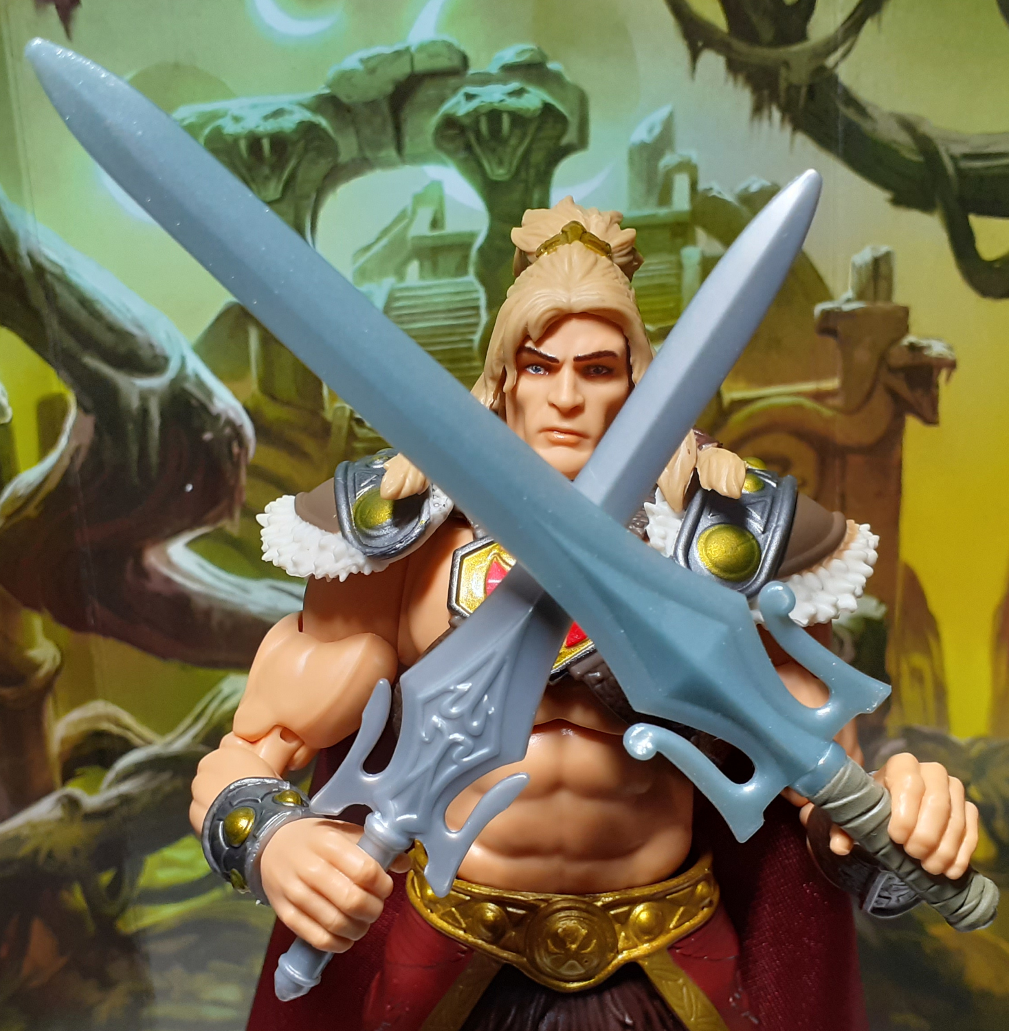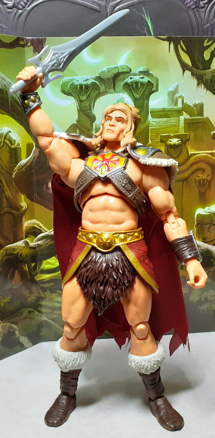 He-Man’s ancestor once ruled Eternia with wisdom and compassion, as he protected the planet from the Snake Men and the Evil Horde.” – Box art bio