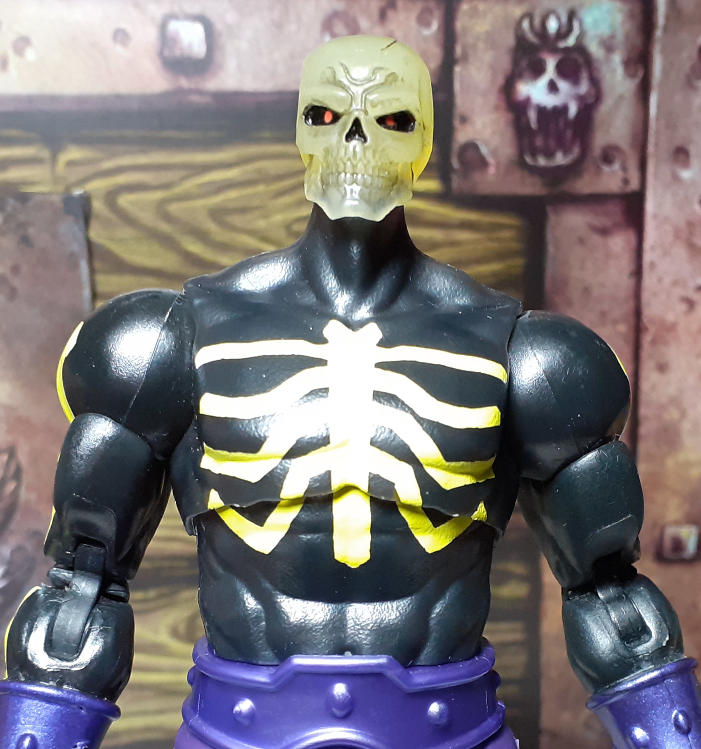 This method was repeated for the Classics and Origins versions of Scare Glow but not here. For the Masterverse Revelation version, the figure is made from a black plastic with the “bones” painted on. It does look pretty good but there is a lot less detail overall. The ribs and spine on the torso in particular look a bit too simplistic. There are some nice little touches such as the broken bone in the right arm and the individual finger bones on the hands.